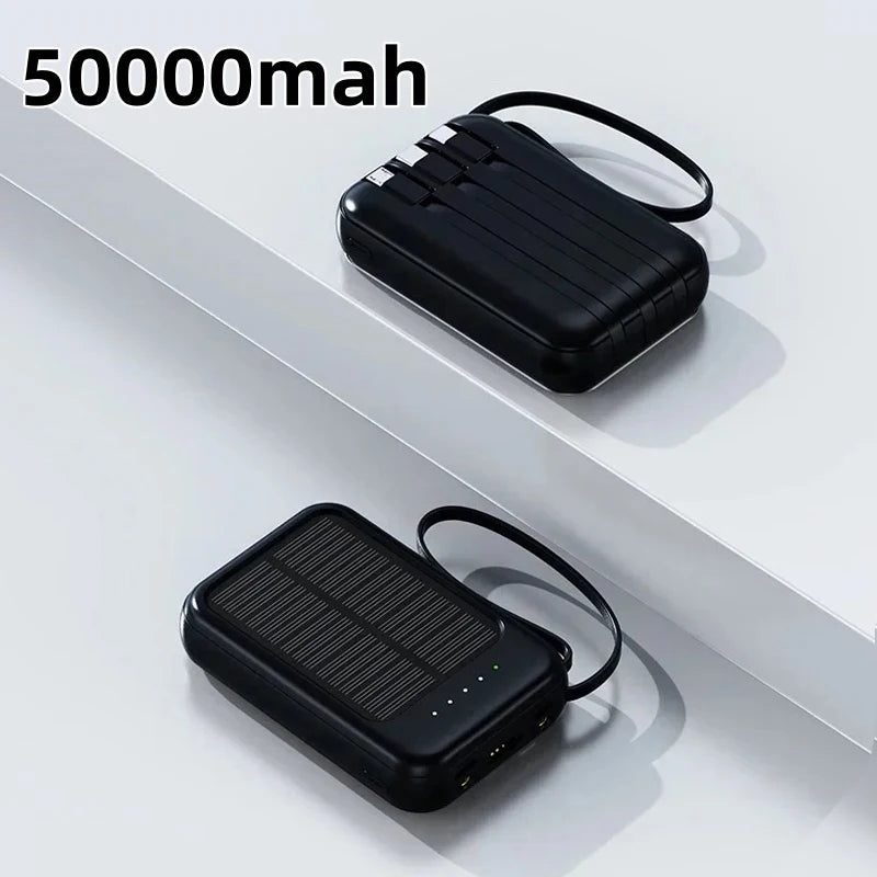 Batterie Solaire 50000mAh – Charge Ultra-Rapide, LED & 4 Câbles Inclus