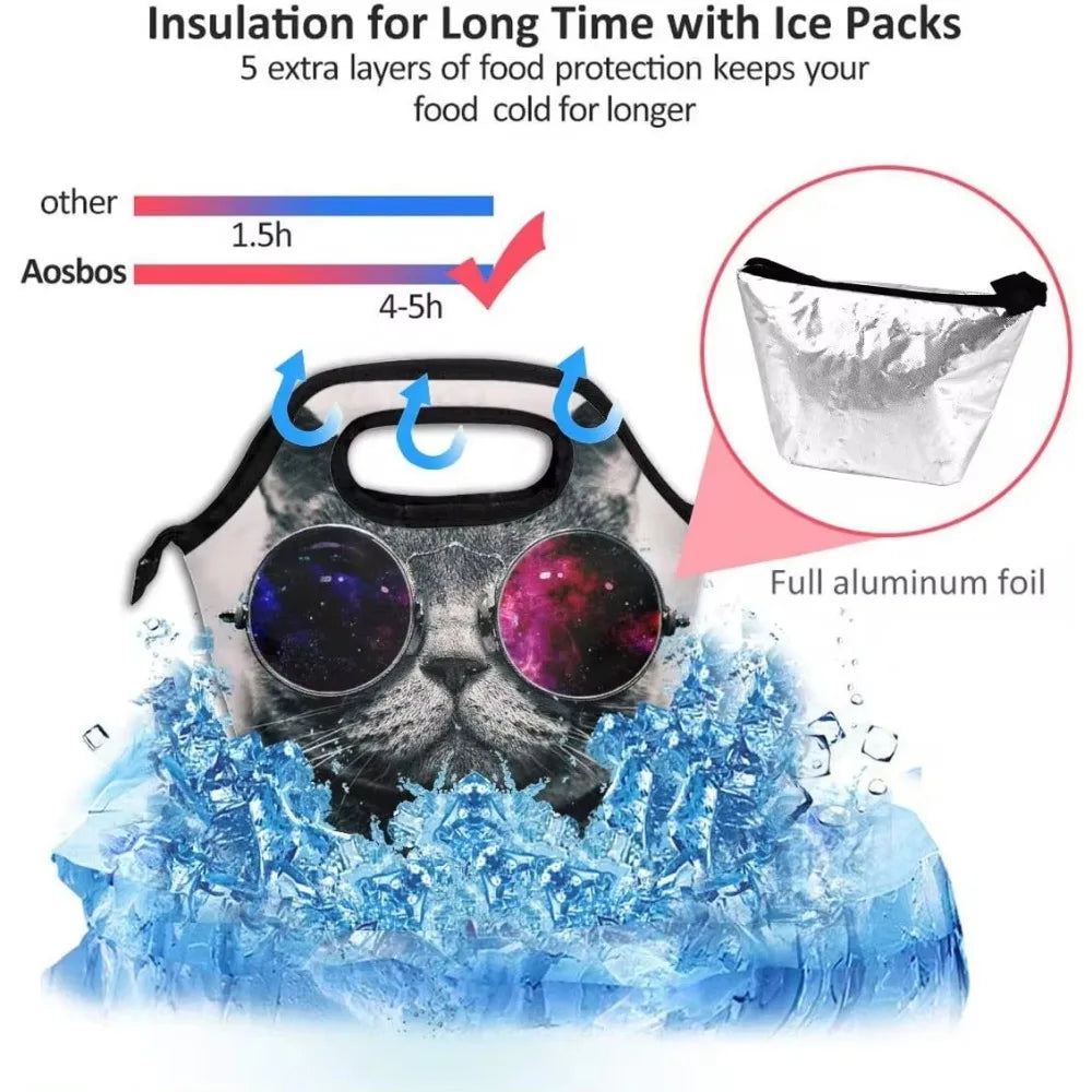 Sac Lunch Isotherme Chat Lunettes – Léger, Grand, Étanche