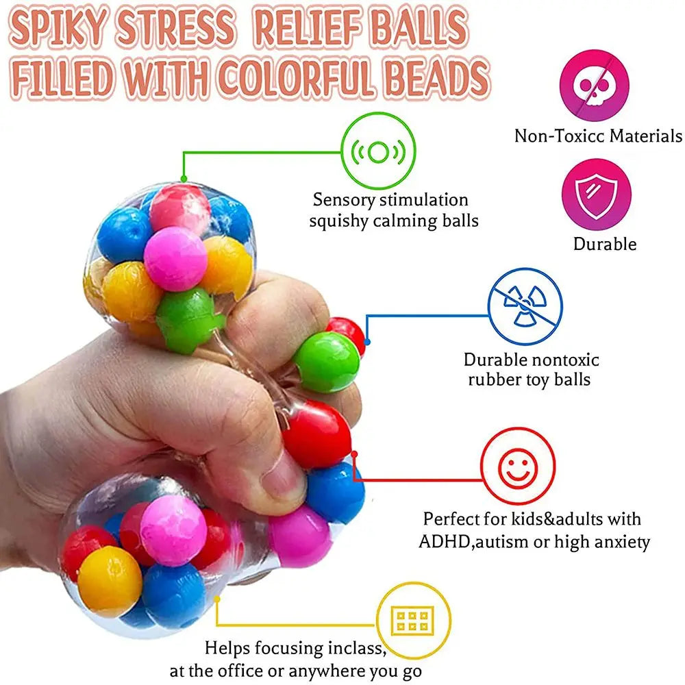 Balle Anti-Stress Sensorielle à Presser – Perles d’Eau Colorées pour Enfants et Adultes