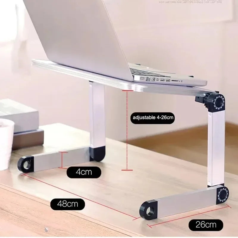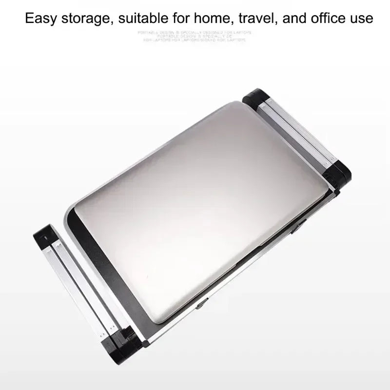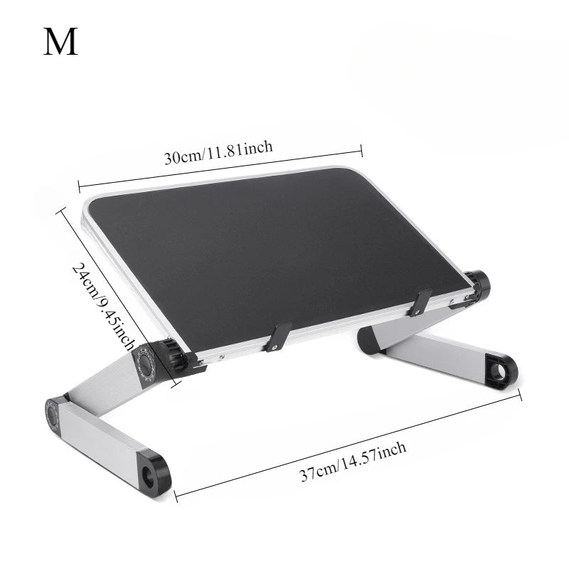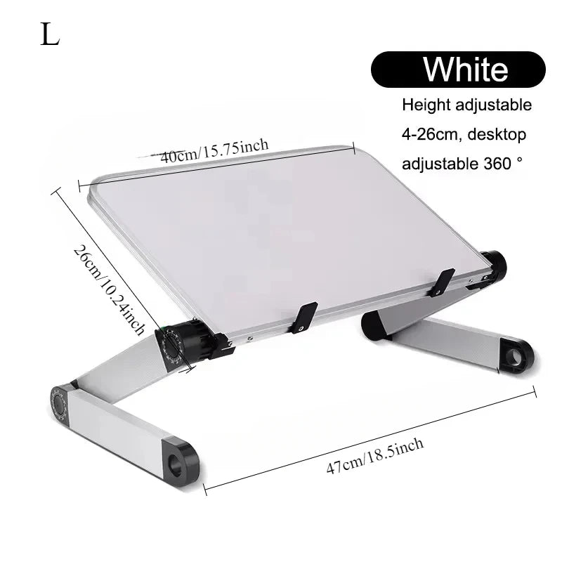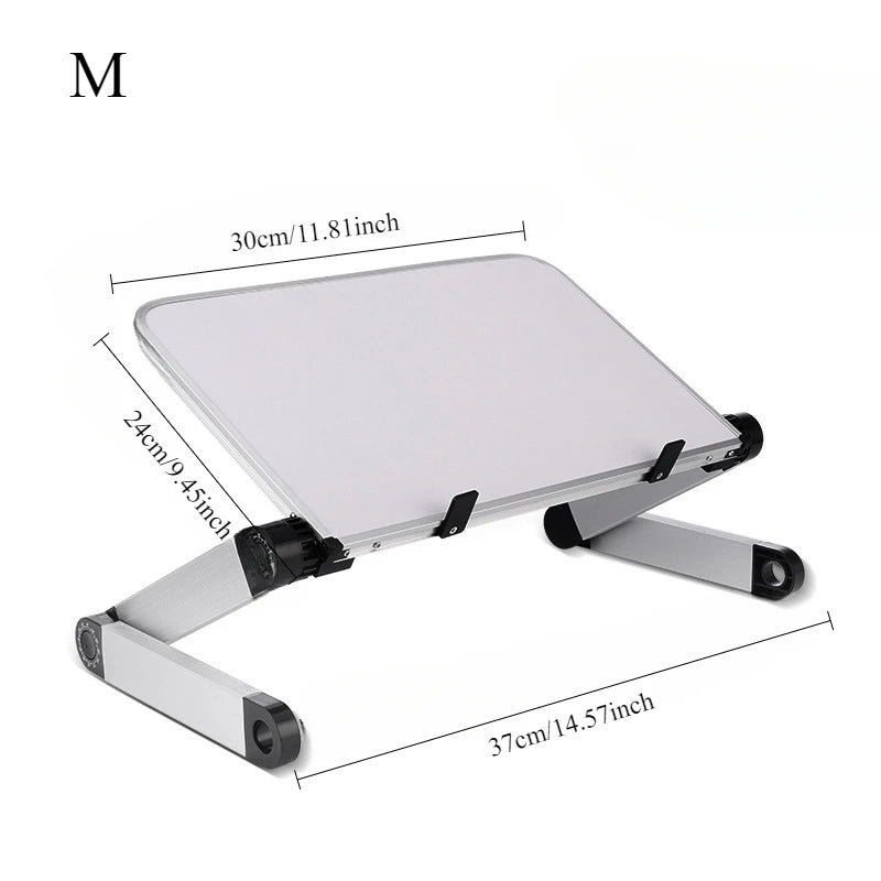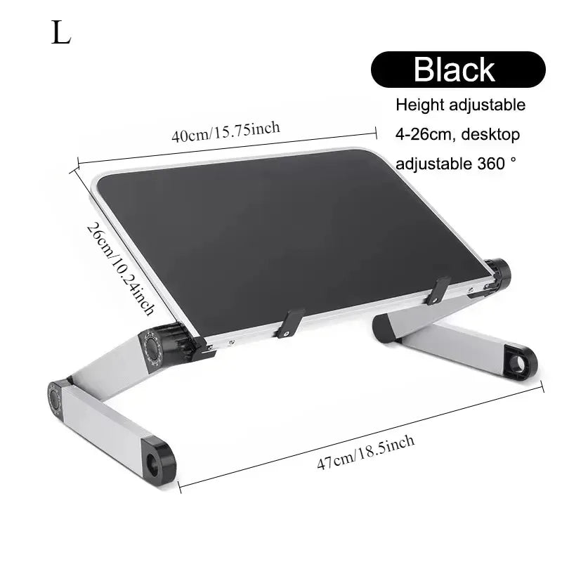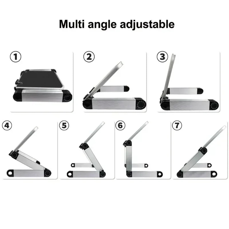 Support pliable en aluminium pour PC portable, réglable à 360° avec étagère clavier intégrée. Léger, stable et parfait pour télétravail ou gaming.